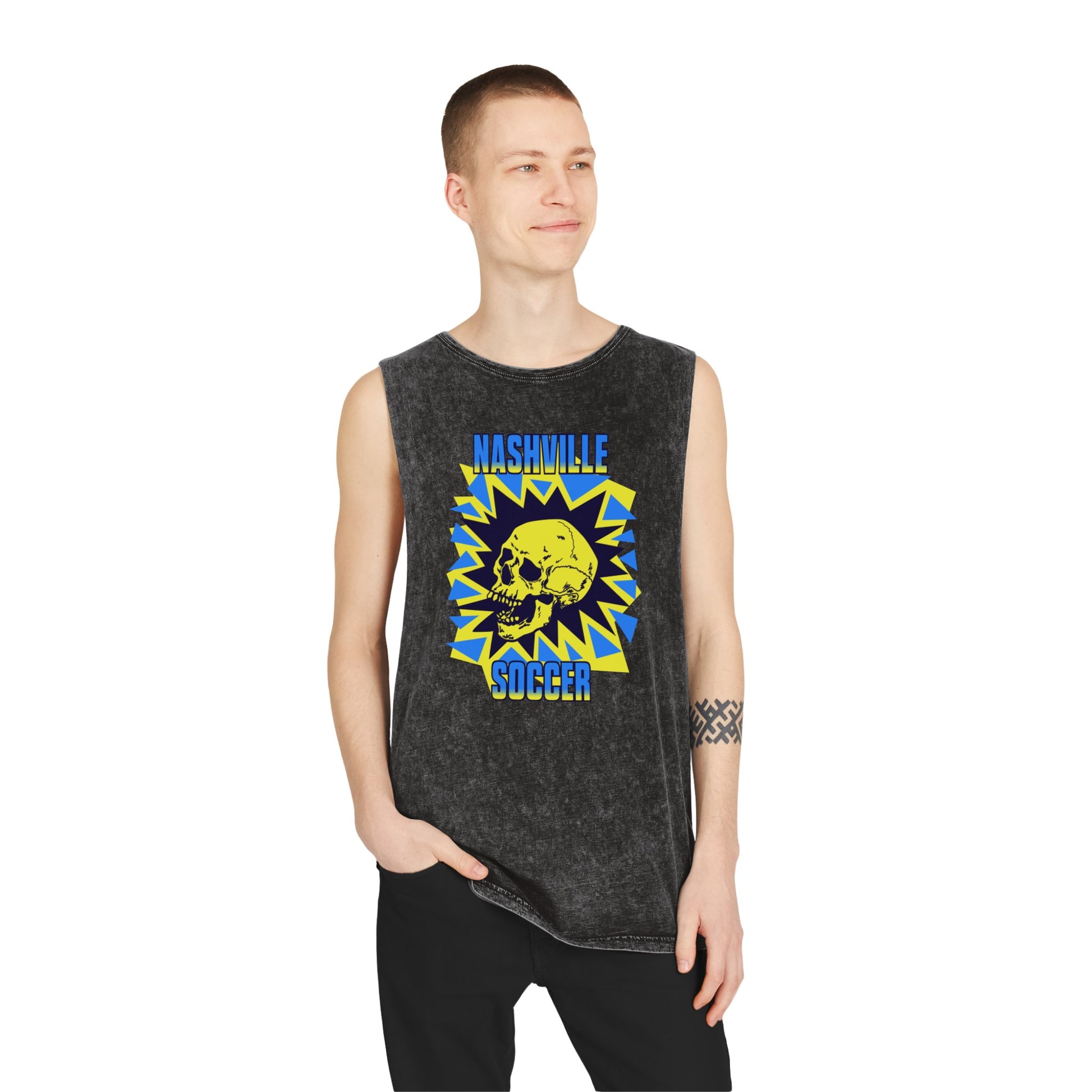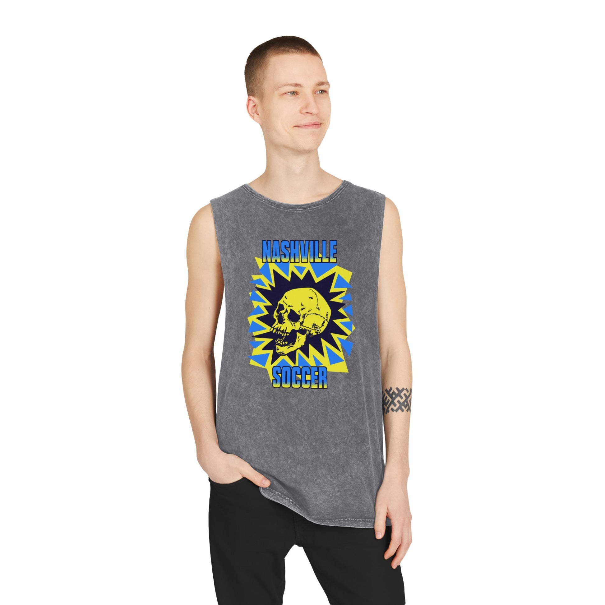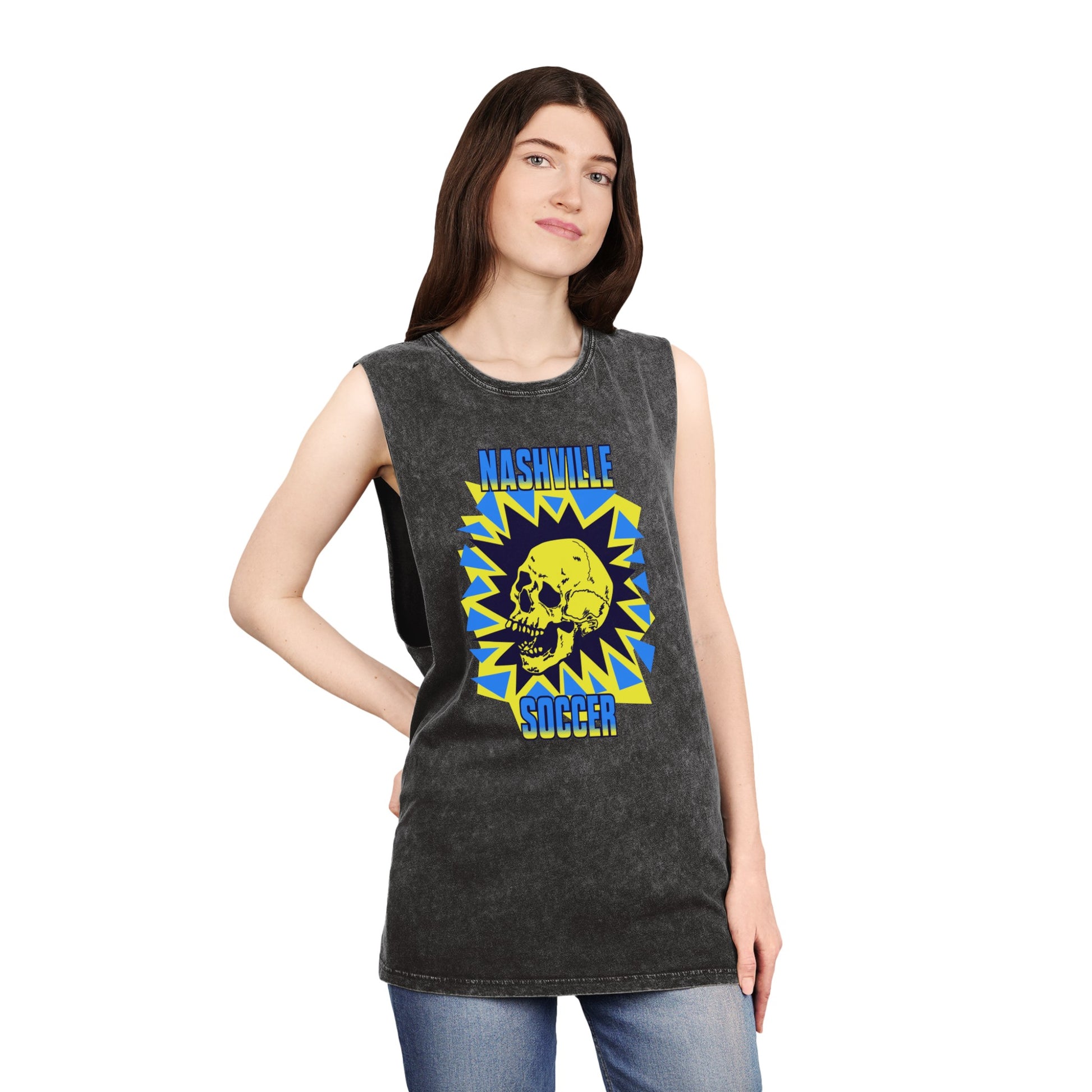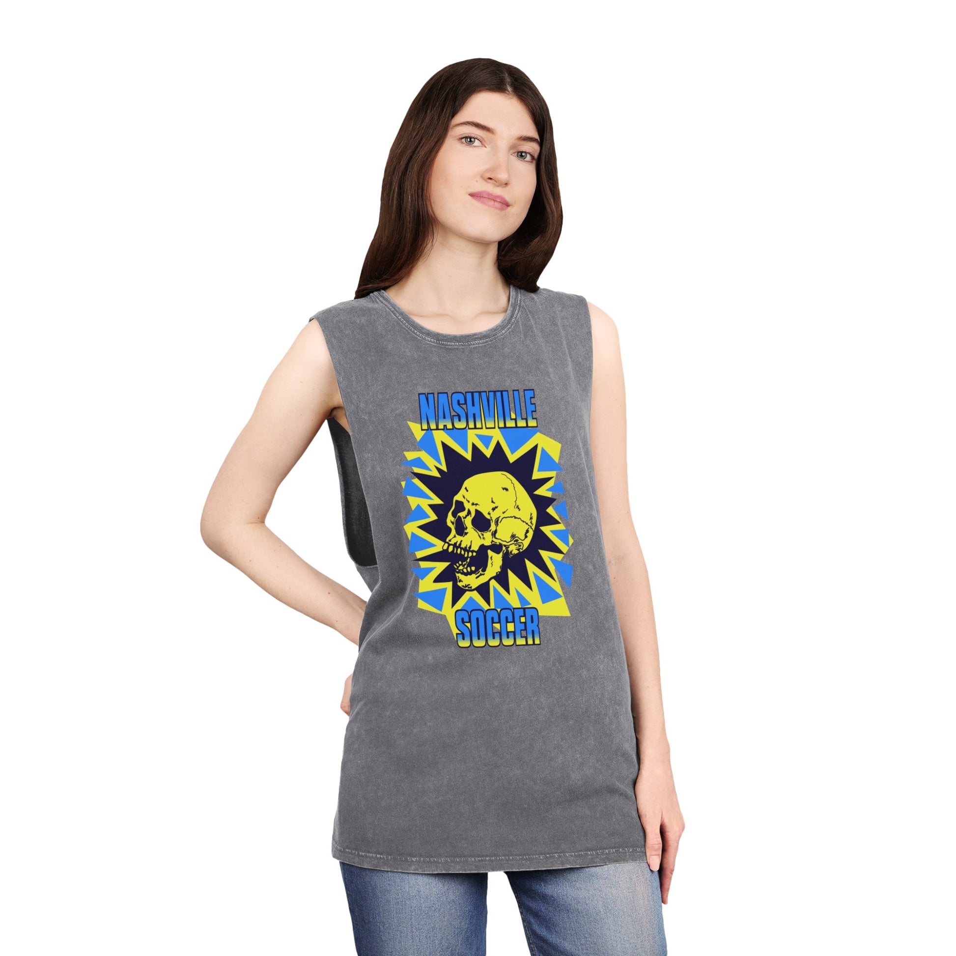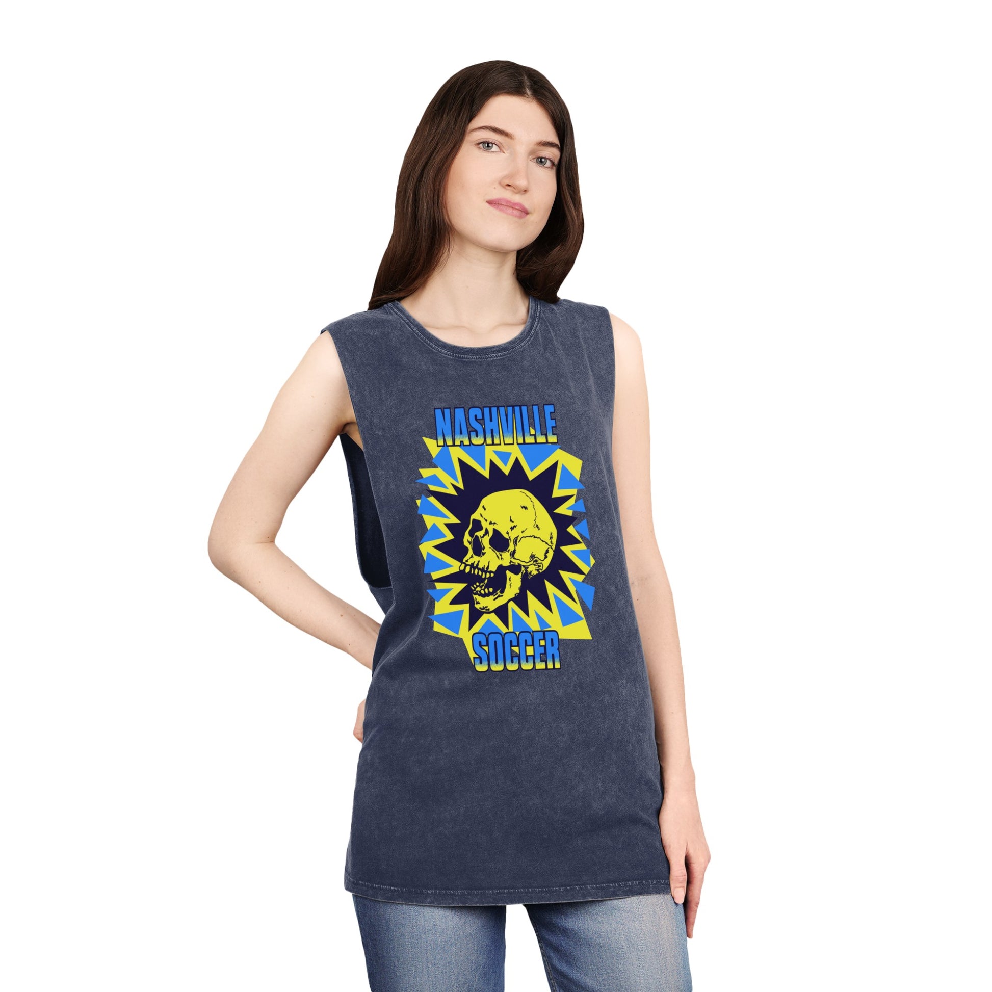 Nashville Soccer Cartoon Villain Unisex Stonewash Tank Top